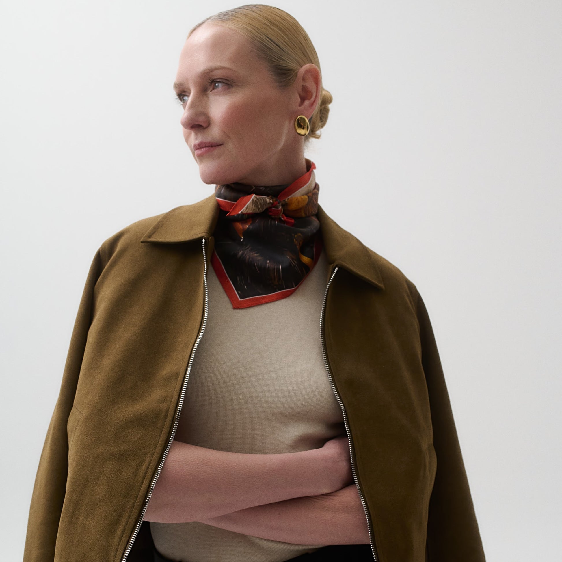 Egon Schiele – ekspresionizmo maištininkas, atskleidęs žmogaus sielos gelmes. Jo kūriniai – intensyvus linijų ir spalvų šokis, kuriame kiekvienas potėpis pulsuoja emocijomis ir vidine jėga. Drąsios linijos ir spalvos perteikia gyvenimo trapumą ir aistrą, o ši nepakartojama ekspresija atgyja prabangiose šilkinėse skarelėse.