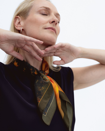 Gustav Klimt – vienas žymiausių simbolizmo ir moderno dailininkų, kurio kūryba žavi išraiškingu grožiu, aistros kupinomis kompozicijomis ir giliu simbolizmu. Jo paveikslai, perteikiantys moters paslaptingumą ir jausmingumą, atgyja prabangiose šilkinėse skarelėse.