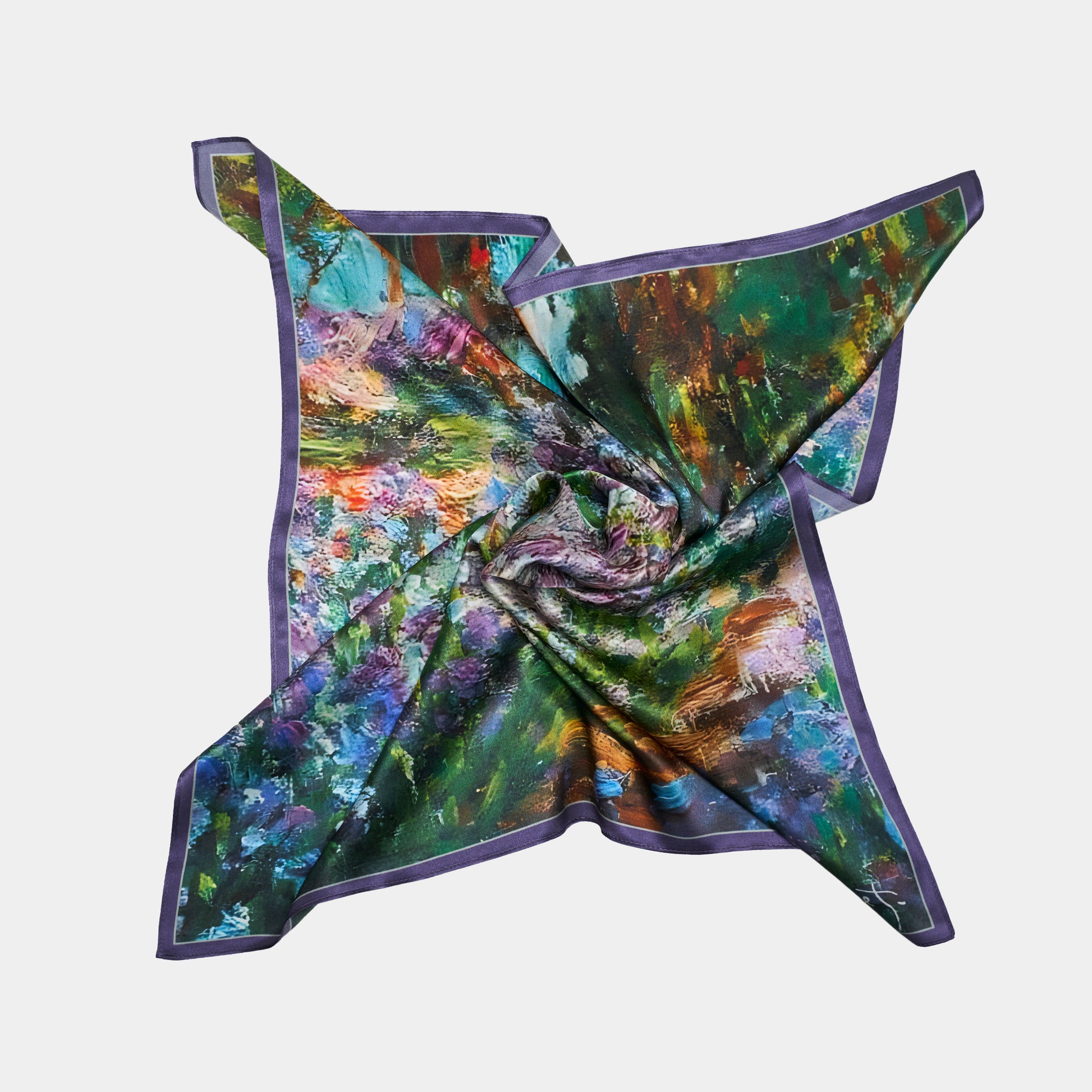 Claude Monet – impresionizmo meistras, kurio žvilgsnis ir teptukas pavertė akimirkos grožį nesibaigiančia spalvų simfonija. Jo kūriniai, tai šviesos ir judesio harmonija, kur gamtos atspindžiai mirga tarsi gyvas peizažas, kupinas jausmingumo ir ramybės. Dabar ši nesenstanti grožio estetika atgyja prabangiose šilkinėse skarelėse.